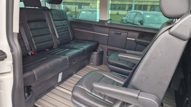 Abdeckung Schiebetürleiste, Airbag Beifahrer abschaltbar, Airbag Fahrer-/Beifahrerseite, Antriebsart: Allradantrieb, Armaturentafel Komfort, Ausstattungs-Paket Licht + Sicht, Außenspiegel asphärisch, links, Außenspiegel elektr. verstell-, heiz- und anklappbar, Außenspiegel konvex, rechts, Außenspiegel und Türgriffe außen in Wagenfarbe, Bodenbelag im Fahrerhaus: Teppich, Chromleisten Stoßfänger vorn, seitlich und Heckklappe unten, Doppeltonfanfare, Dämmglas-Paket, Fahrassistenz-System: Autom. Distanzregelung (ACC) und Umfeldbeobachtungssystem (Front Assist), Fahrassistenz-System: Bremsassistent (HBA), Fahrassistenz-System: Einparkhilfe vorn und hinten, Fahrassistenz-System: Multikollisionsbremse (Multi Collision Brake), Fahrassistenz-System: Müdigkeitserkennungs-Sensor, Fahrassistenz-System: Spurwechselassistent (Side Assist / Blind Spot Sensor), Fahrwerk 17", Fenster im Lade-/FG-Raum: - feststehend, vorn und hinten links, Fenster im Lade-/FG-Raum: - feststehend, vorn und hinten rechts, Frontscheibe Dämmglas, Funkschlüssel (2) klappbar, Fußmatten Fahrerhaus: Velours, Gepäckraumabdeckung / Rollo, Haltegriffe A-Säulen, Handschuhfach abschließbar, Heckklappe mit Verglasung, Heckscheibe heizbar, mit Wischanlage, Innenausstattung: Dekoreinlagen Dark Silver brushed (Dekorband Black Glossy), Innenleuchten im Fahrerhaus: Leseleuchten vorn (2), Innenleuchten im Lade-/FG-Raum: Trittstufenleuchten, Innenraumfilter: Pollenfilter, Karosserie/Aufbau: Bus, Kindersicherung an den Schiebetüren, Klapptisch integriert Lade-/Fahrgastraum, Klimaautomatik Climatronic (Fahrerhaus + Lade-/Fahrgastraum), Kraftstofftank: 80 Ltr., Kühlergrill schwarz lackiert, mit Chromleisten, Ladekanten-/ Trittstufenabdeckungen in Edelstahl, Lenksäule (Lenkrad) verstellbar, Motor 2,0 Ltr. - 150 kW TDI, Multifunktionsanzeige Premium (Farbdisplay), Multimedia-Schnittstelle USB (iPhone / iPod) mit AUX-IN, Radstand 3000 mm, Reifen-Reparaturkit, Reifenkontroll-Anzeige, Schadstoffarm nach Abgasnorm Euro 6, Scheinwerfer und Heckleuchten LED, Schiebetür Lade-/Fahrgastraum rechts, SCR-System (AdBlue-Technologie), Seitenscheiben Dämmglas, Sitze im Fahrerhaus: Beifahrersitz Komfort, Sitze im Fahrerhaus: Fahrer- und Beifahrersitz heizbar, Sitze im Fahrerhaus: Fahrer- und Beifahrersitz höhenverstellbar, Sitze im Fahrerhaus: Fahrersitz Komfort, Sitze im Fahrerhaus: Lendenwirbelstützen Fahrer- und Beifahrersitz, Sitze im Lade-/FG-Raum: 1.Reihe, 2 Drehsitze, Sitze im Lade-/FG-Raum: 2.Reihe, 3er-Sitzbank, Sonnenblenden mit Spiegel (beleuchtet), Sonnenschutzrollo im Fahrgastraum, Start/Stop-Anlage Motor, Steckdose (12V-Anschluß) im Fahrerhaus, Stoßfänger in Wagenfarbe, Türablagekasten vorn, Verkleidung im Lade-/FG-Raum: Komfort, Zentralverriegelung mit Fernbedienung und Innenbetätigung, Zuheizer, Zul. Gesamtgewicht 3,00 t